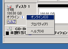 そしてWindows Serverの場合このディスクを使えるようにするには、起動後に作業があります。